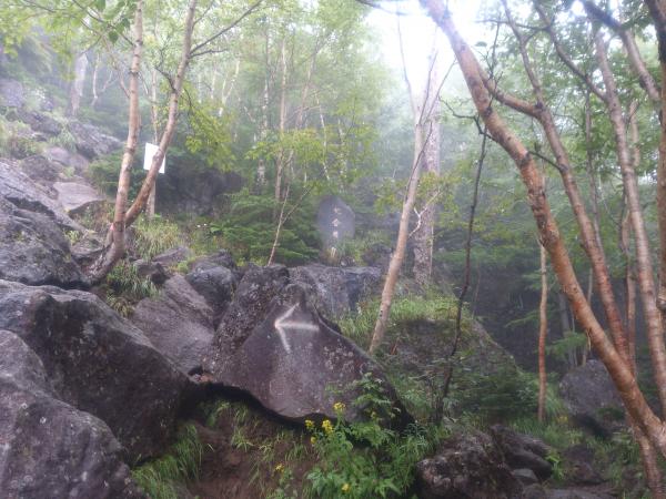 4合目~山頂 岩場の急登 段差が大きい岩場が連続します。特に下りで注意。