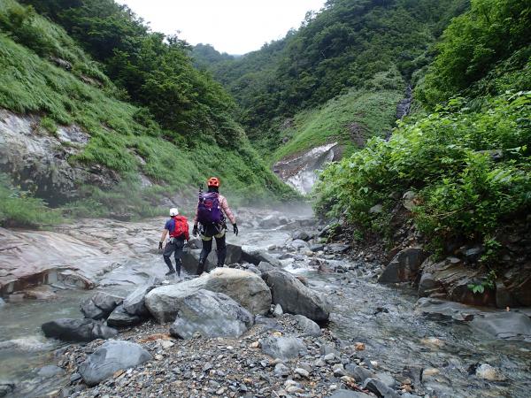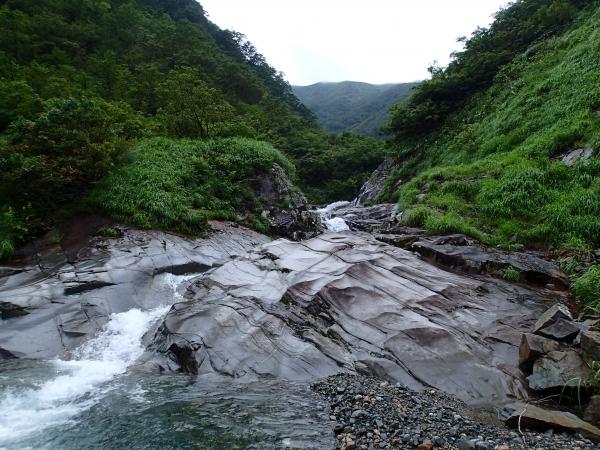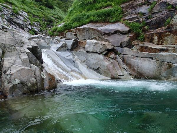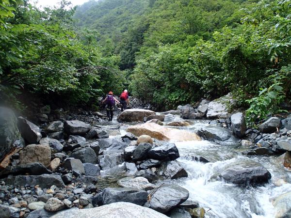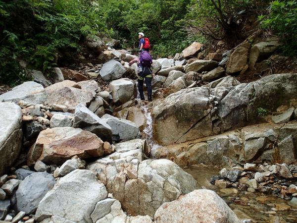 開けた沢で気持ち良いのですが、コケによるスリップには要注意です。