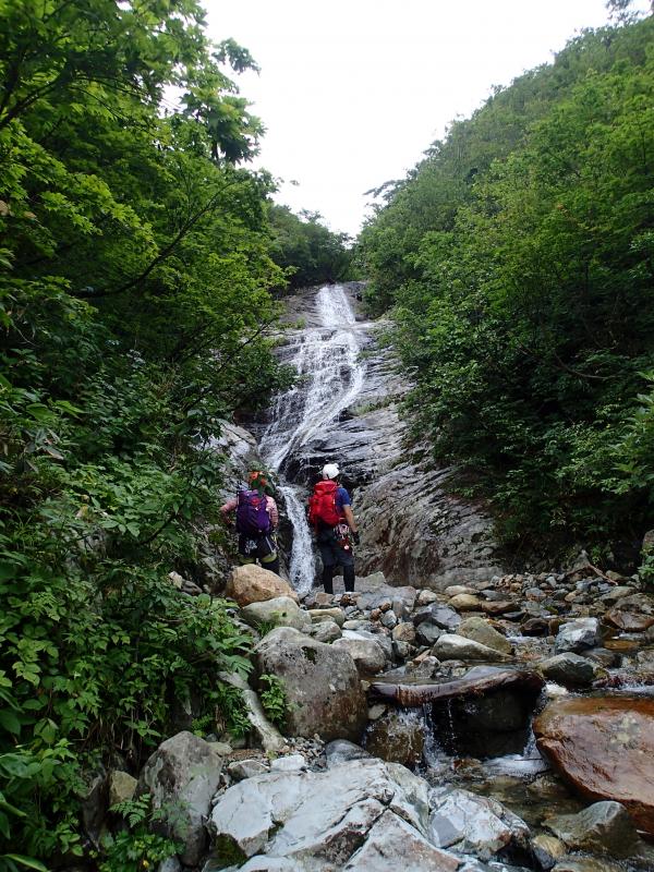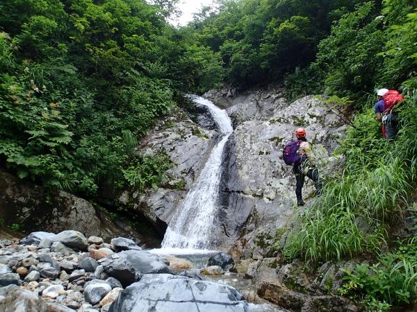 いろいろなパターンの滝が続いて現れ、登攀技術を要します。