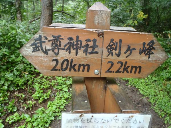- 武尊神社駐車場(40)登山道入り口(50)手小屋沢分岐(70)武尊山山頂(50)剣ヶ峰山頂(60)水場(35)登山道入り口(30)武尊神社駐車場