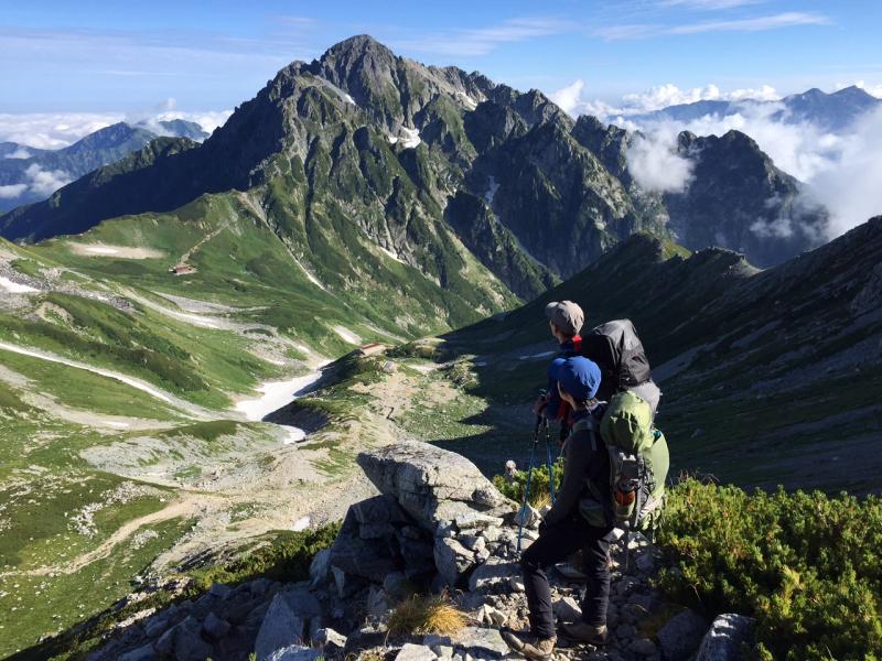 - 穂高岳山荘(130分)→ 涸沢小屋(120分)→ 横尾(60分)→ 徳沢(120分)→ 上高地BSターミナル
