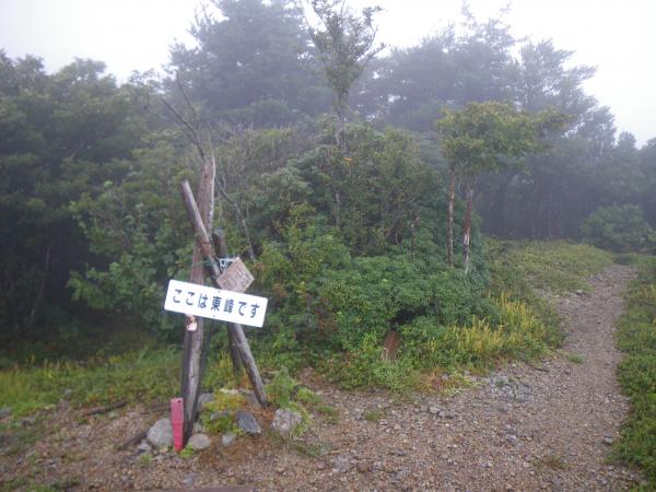 ジュルミチ谷は大きな滝がなく、それほど遡行対象にならずあまり人が訪れない静かな沢です。銚子ヶ口に抜けるためにマーキングが少しだけあり、特に二股にかかっているのは安心します。その先の最後の10mくらいの滝を最後に尾根にあがるようですが、今回はわからず沢を詰めていきました。すると銚子ヶ口東峰から南に伸びる稜線にでて、そのまま踏み跡をたどり、頂上に着きました。稜線にあがった時点でいまいち、現在地がわからず、思っていた箇所と違う尾根だったとわかったのが頂上から下山についた頃。視界もなく、逆方向に下山していたのがわかり、見覚えのない標識を見て、あわててもどるはめになりました。完全に方向を見誤り、情けなかったです。