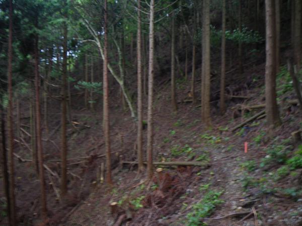 銚子ヶ口岳(ちょうしがくちだけ・1076m)もあまり人が来ない山で、この奥にある秘境とされるイブネやクラシへの通り道になっています。頂上は三角点のある中央が主峰ですが、東西南北の頂上があり、各々標識があるようです。普段はヒルが多い山で立ち寄りたくない山ですが、今日はこの界隈には見ませんでした。今回は杠葉尾の銚子ヶ口登山口へ下山しましたが、通常、この山には風越谷を詰めた林道終点からモノレール軌道沿いに上がってくるのが最短ルートです。下りに使った杠葉尾からの道は尾根沿いで結構、傾斜が緩い尾根で時間がかかると思いました。