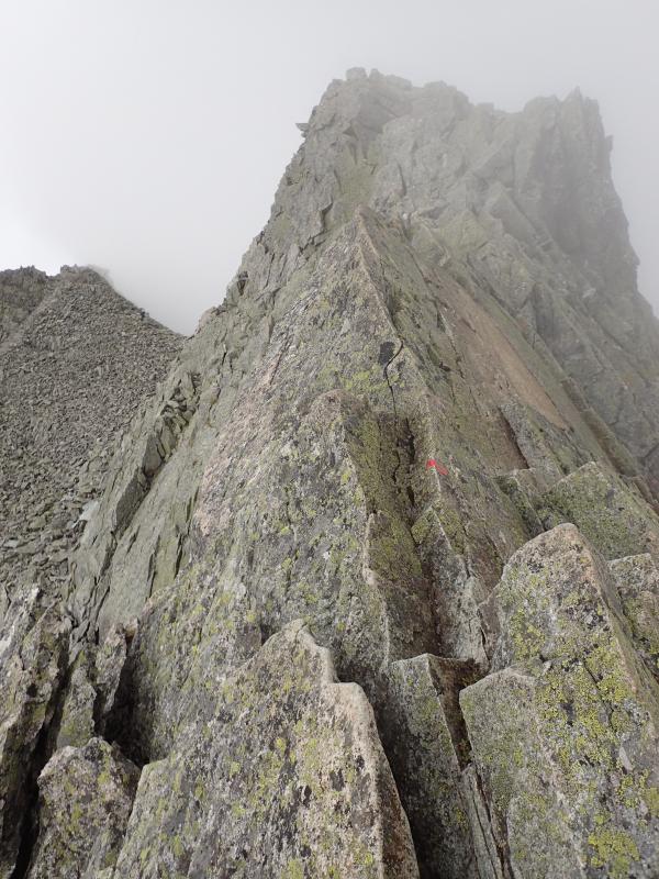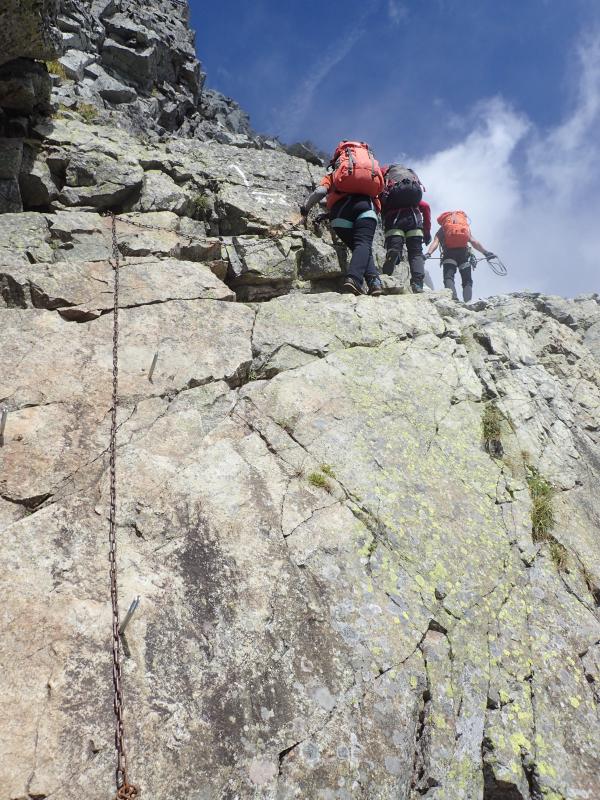 一度ルートに入ると、コースタイム平均9〜10時間の長丁場の緊張を要します。常にルートファインディング、足場、手の置き場、落石に細心の注意が必要です。