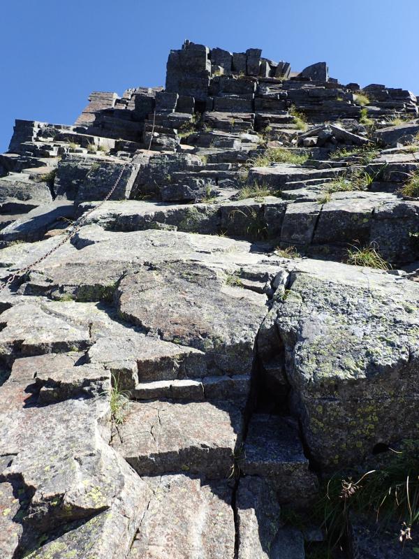 西穂からは「スラブ状の岩場」「馬ノ背」が核心になります。