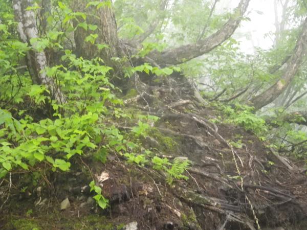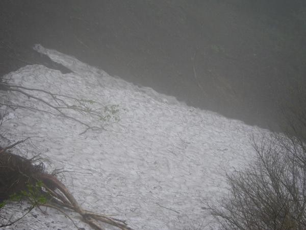 当日は天気が悪すぎて展望は全然ききませんでしたが、天気が良ければ白山、大野平野の大展望が広がります。歩き足りずに林道の終点まで歩いてみました。まだ雪が残っていました。
