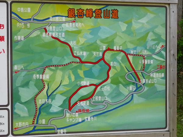 銀杏峰(ゲナンポウ)は宝慶寺いこいの村から林道を走り、駐車スペースのある登山口に着きます。