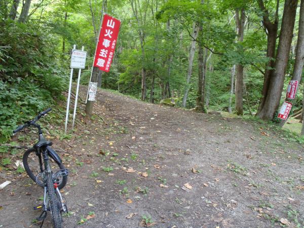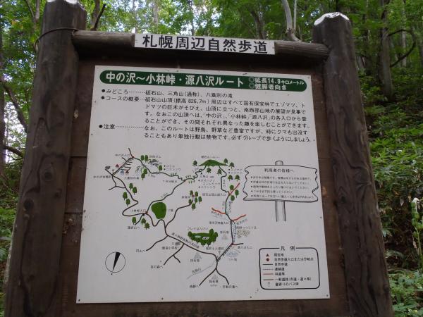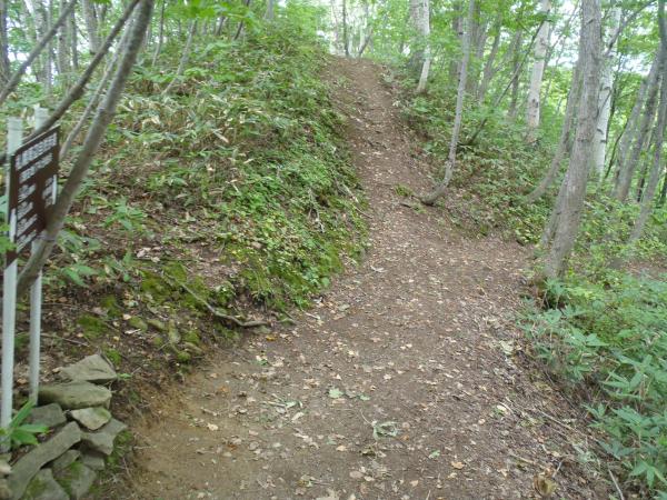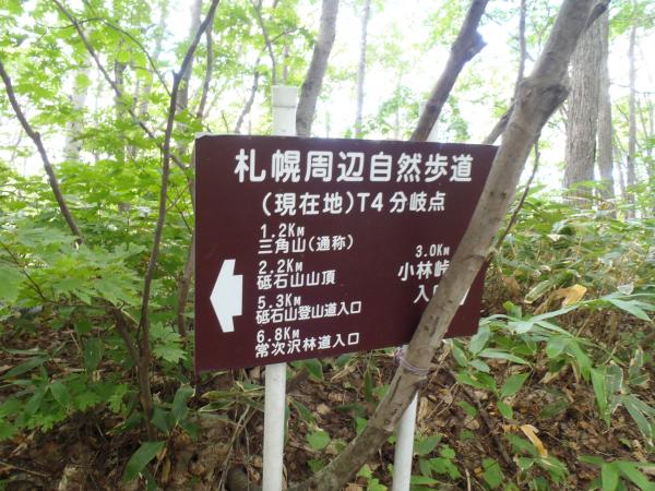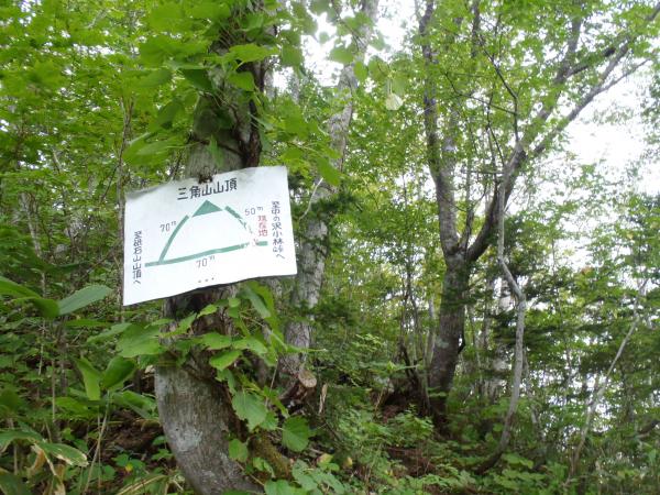 - 中ノ沢コース登山口30分→T4分岐点20分→三角山15分→頂上