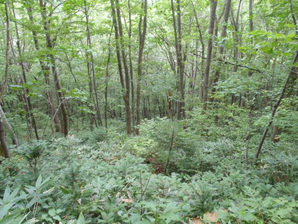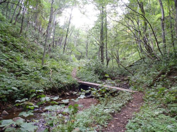 中ノ沢コースは沢から尾根へ変化に富む所で明るく切り開かれた快適な登山道を森林浴気分で