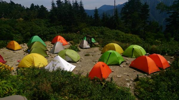 ロープウェイは始発に乗りました(この時期は08:30)が、10時の時点でテント場は六割方埋まっていたため、さっさとテントを張ってのんびりと。
