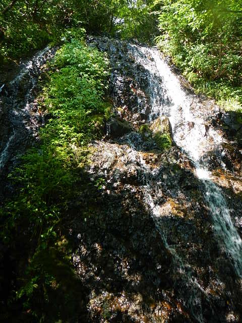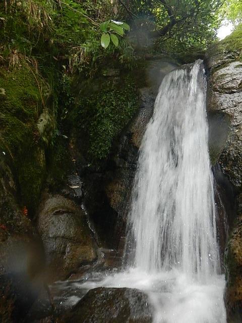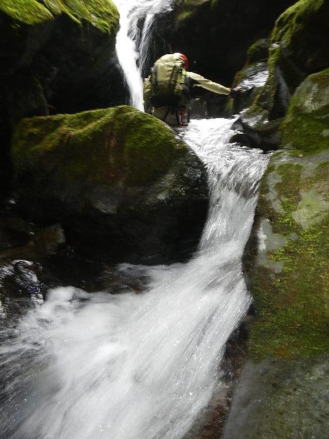- 水量は予想より多めでした。沢幅は狭く左右岸の雑木が覆い被さる所が多々あります。そのせいか異常に蜘蛛が多いです。滝を巻く際に草付き粘土質の泥で滑り易い所あり、藪が濃くイバラなどのトゲ植物にも要注意です。
