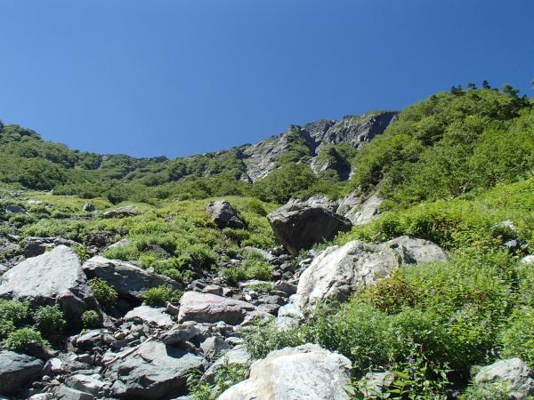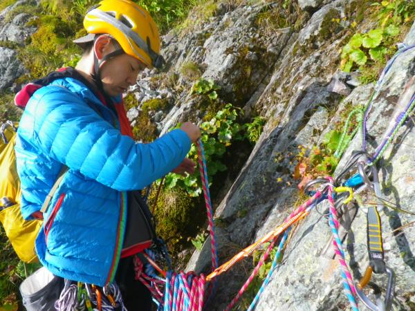 また、ルート上には堆積した板状の石が至る所にあり、踏落しやロープ操作で落さないように注意です。