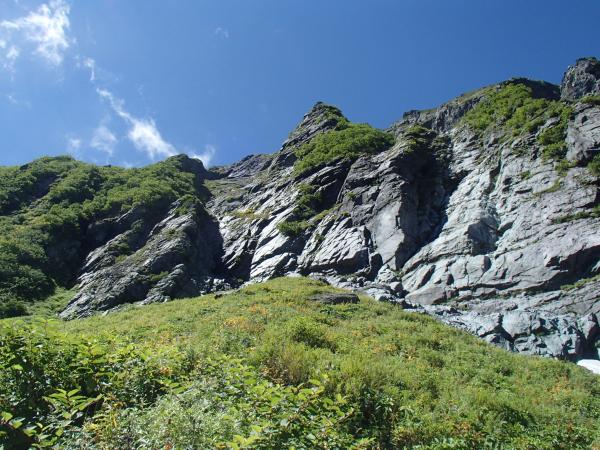 【2日目:アタック】白根御池小屋(15分)大樺沢二俣(70分)C沢D沢の中間尾根(50分)下部岩壁(180分)第四尾根取付(240分)第四尾根終了点(20分)北岳山頂(120分)白根御池小屋(120分)広河原