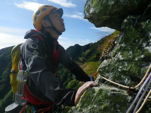 まだ時間もあったので、ここからは進めるところまでロープを出して登ってみることに。