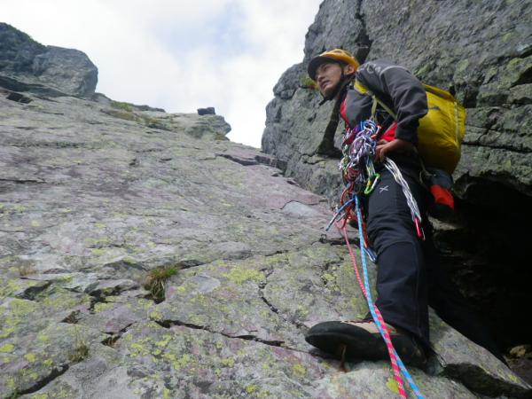 その崩壊の影響で、最終ピッチは変化したらしく、トラバースしてからの登りは割とハードなルートでした。