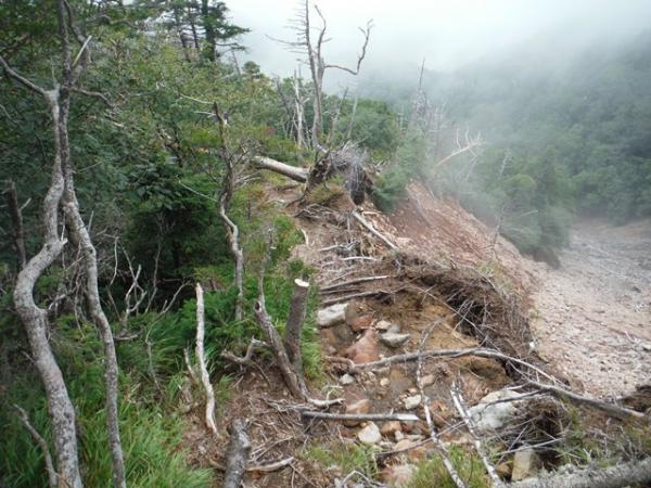 唐沢小屋から水場へ降りる道なのですが崩落部分が新しく整備され