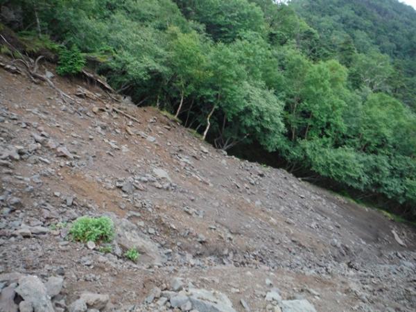 唐沢小屋から黒岩尾根を下ってすぐのガレ場ですが崩れやすいのでこちらも注意してください。に。