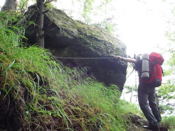 - 踏み跡、道標は明瞭だが黒岩尾根は笹が道を隠す。