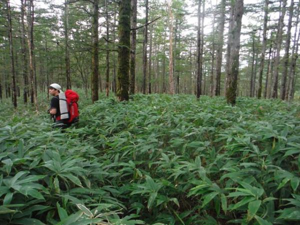 田母沢のコルからは笹が生い茂り雨具を着用していないとびしょびしょになってしまいます。