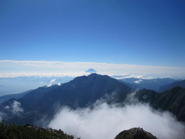 翌日超快晴。いつも天気にはフラれているので、山ってこんなに晴れるもんなんだなと。風もなく、ウールのベースレイヤーでちょうど良いとても快適な気候。汗もかき過ぎず、とても気持ちの良い天気でした。山頂からの眺望も最高!富士山をあんなにくっきり拝めたのは、冬に行った赤岳以来でした。