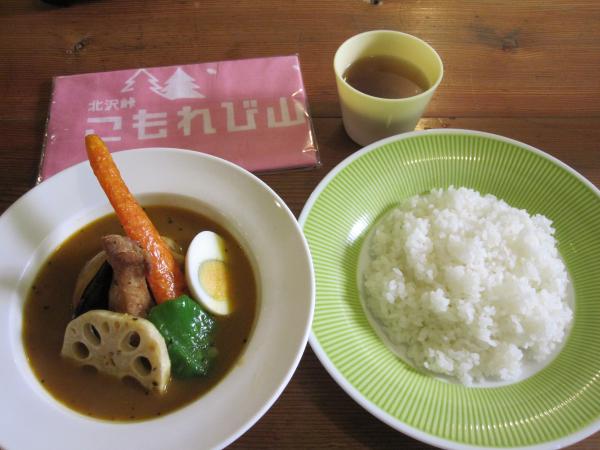 テントを撤収してからバスまで時間があったので、こもれび山荘で名物だというスープカレーを頂きました。この山荘自体がなんだかもうおしゃれなカフェといった雰囲気なので、カレーもとってもおしゃれでした!そしてとってもおいしかった!!おすすめです。