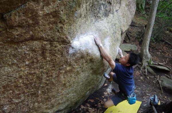 前回触って、登れなかった忘却岩の「忘却の河」(2段)も