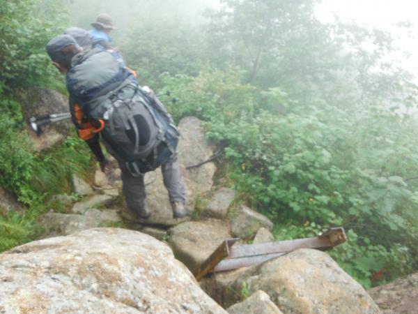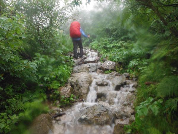 ずっと雨だったので足下は沢のようになっていました 渡渉も結構大変でした