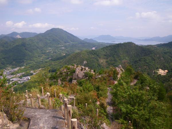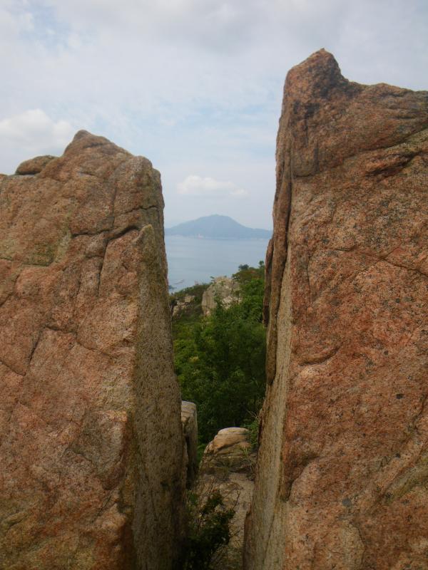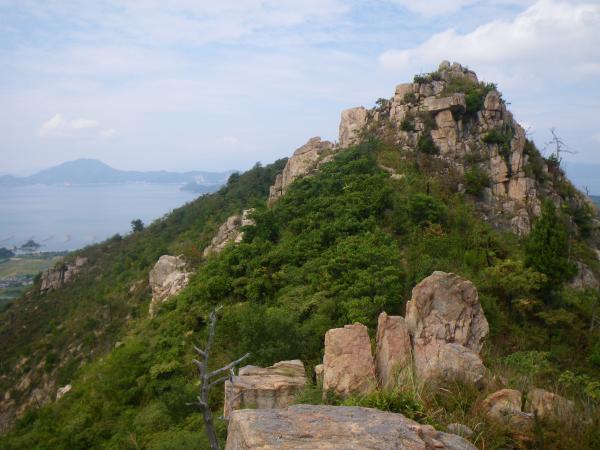芸予海峡に位置する大三島は愛媛県内最大、瀬戸内海でも4番目に大きな島で、その中心を占める山岳が鷲ヶ頭山(わしがとう436m)・安神山(あんじんさん・266m)です。花崗岩質の岩峰で、兜岩、唐獅子岩、烏帽子岩など奇岩が点在する岩稜が特異な山岳地形です。