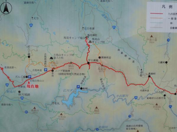 - 秋月側駐車場(40分)5合目駐車場(40分)水舟(5分)ツゲの原生林(25分)古処山
