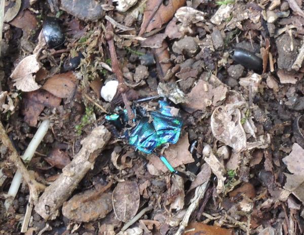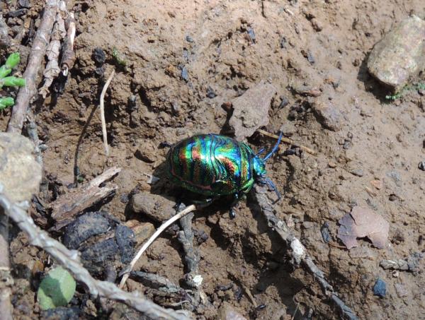 光の当たり具合でブラックオパールのように輝きとても美しいカメムシの幼虫でした。