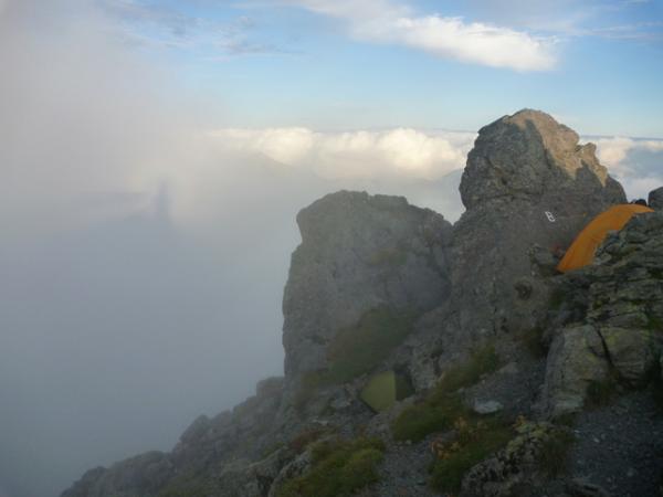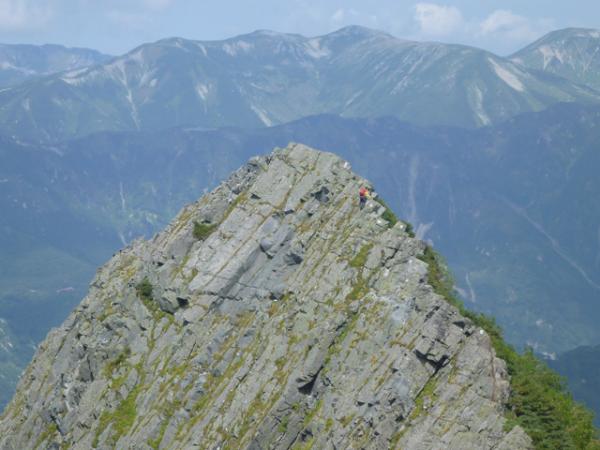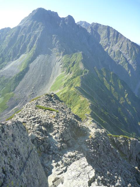 振り返ればかっこいい槍ヶ岳が見れて、前を見れば北穂高岳がそびえたっていて、横を見れば切れたった谷があり常に緊張感を持った歩きが出来ました。