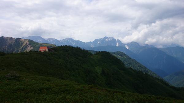 初日は柏原新道から登って爺ヶ岳を越えて冷池山荘で宿泊。柏原新道はよく整備されていて歩きやすいです。種池山荘からは稜線歩きとなりまずまずの天気で剣岳&立山連峰を眺めながら楽しく歩けました。山荘に到着したらまずは缶ビールで乾杯!夕食を食べた後も喫茶室で飲ミニケーション!これこそ山小屋での正しい過ごし方でしょう(笑)