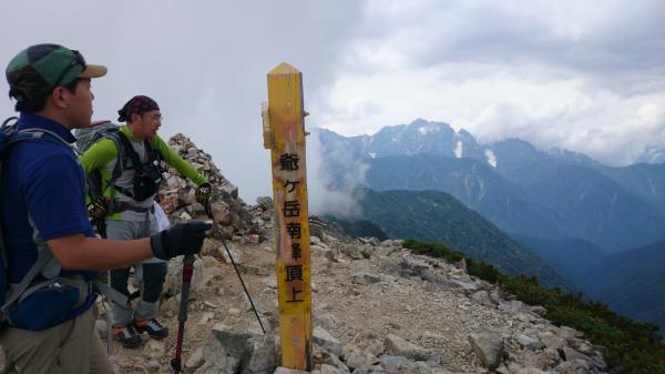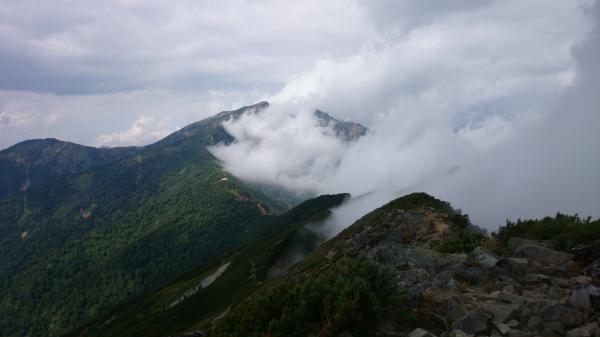 翌日は明け方に雷雨でしたが朝食を食べて出発する頃にはやんでくれました。鹿島槍ヶ岳までガスの中をゆっくり登っていきます。山頂で一瞬ガスが晴れて八峰キレット・五竜岳方面が見えました。浮石に注意しながら下って冷池山荘で預けた荷物を回収して種池山荘を目指します。途中爺ヶ岳中峰あたりで念願の雷鳥を見ることが出来ました。種池山荘では昼食に名物の手作りピザを注文!あつあつのピザはおススメです!柏原新道をゆっくり下って雨に降られることなく無事下山しました。