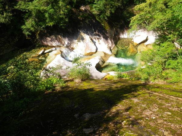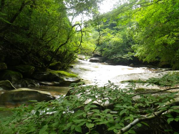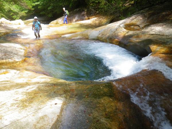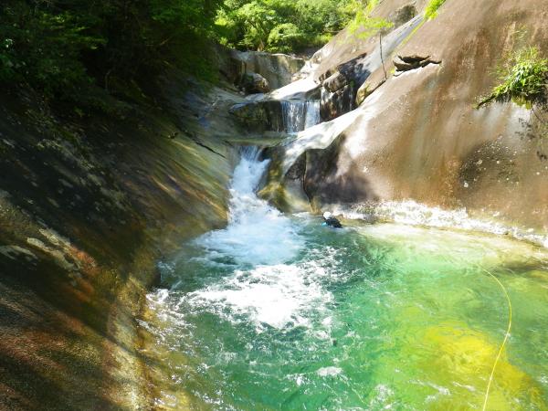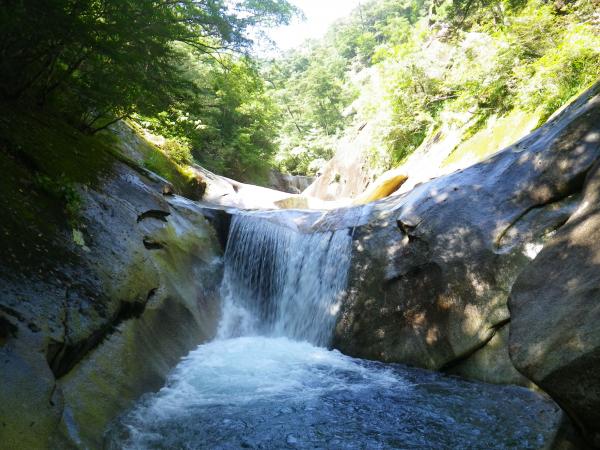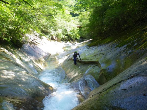 遡行ルート沿いに登山道があり、いつでもエスケープしやすい。
