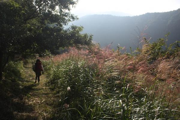 - ススキの原を抜け、川を下に見ながら上っていきますが、岩がゴロゴロしており、滑りやすく歩きにくいので、注意が必要です。