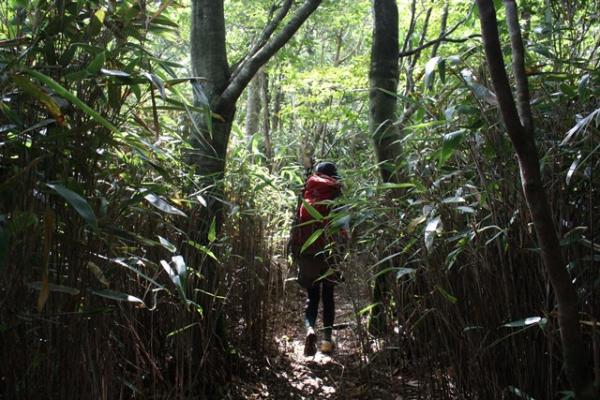 展望台の先は、クマザサを抜けて歩いたり、急登がありますが、変化があって、面白い登山道で楽しめました。