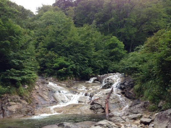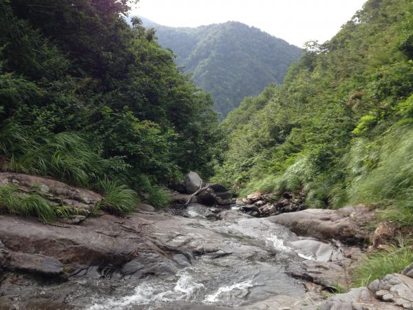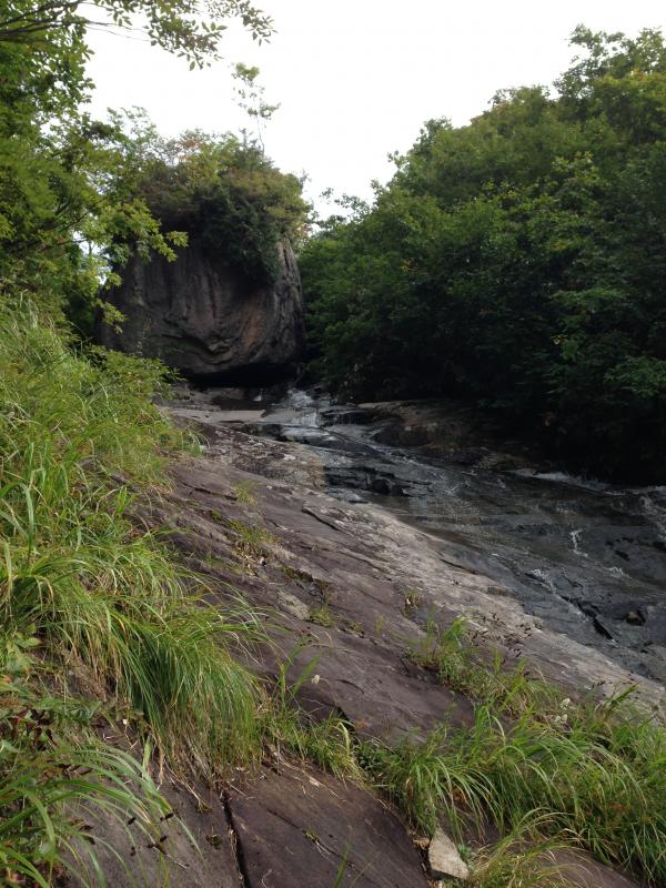 タラタラのセンは右岸を巻いたのですが、高度を上げすぎて大ナメ滝の中程まで上がってしまいました。藪漕ぎは難しいですね。