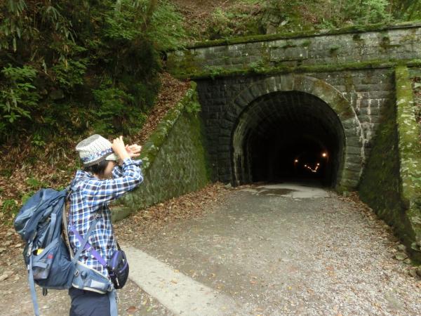 旧天城トンネル内に明かりもついていますが、少し頼りない明るさなのでヘッドランプを付けると安心です。