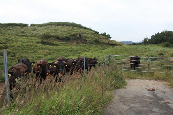 牧場には、牛が放牧されています。牛が追いかけてくることは十分予想されますので、注意して通過してください。