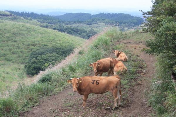 牧場を通過する所が、他は、高森峠からと、長谷峠からと3か所ありました。牛が追いかけてくることもありますので、十分注意してください。(実際、追いかけてきました…。興味深々のようです。)