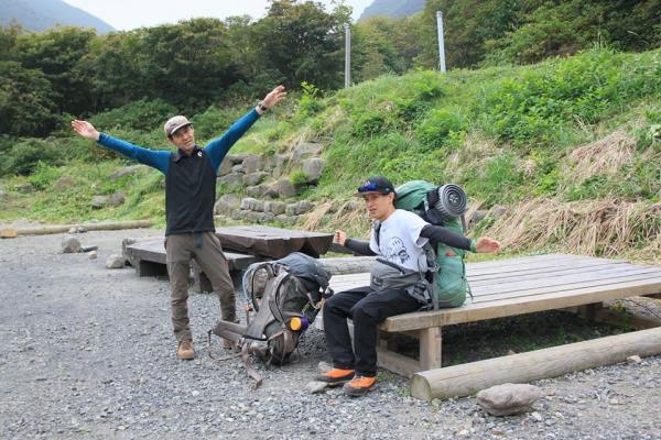 一日目はテントが入っていない栃尾君にほとんど荷物担いでいただき
