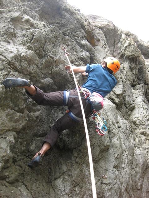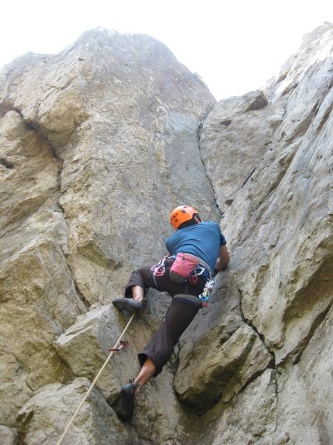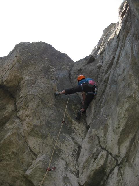 露出感の高いコーナーを辿る。岩登り感があっていいルートです。