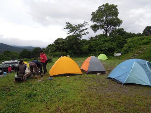 前日に雨飾山登山口まで車で入り、雨を心配しながらテント泊。