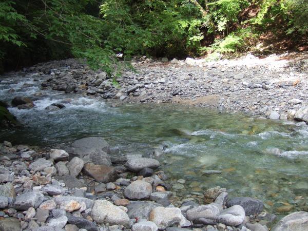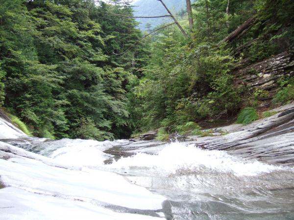 - 一日目 西沢渓谷駐車場(150分)釜ノ沢出合(60分)両門ノ滝(60分)幕場