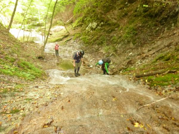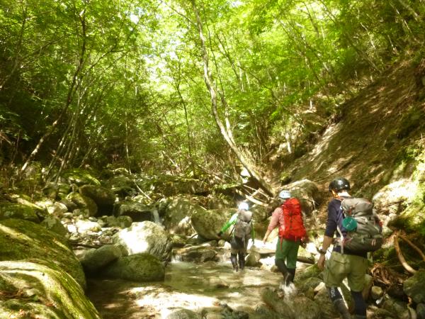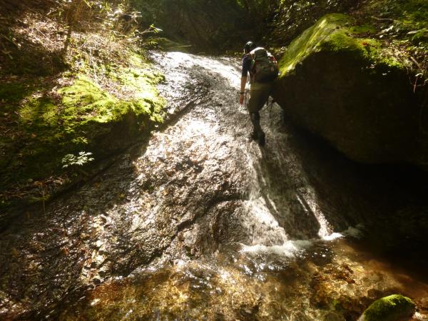 - ○沢自体は初級者向きですが、アプローチが長いです。水ノ木分岐からは登山道を離れて踏跡を進むため、地形図とコンパスを使って歩きます。GPS もあった方が良いです。