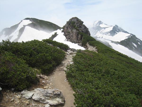 - 笠新道は2300mを越える辺りから残雪に覆われ、杓子平にも豊富な残雪が残っています。