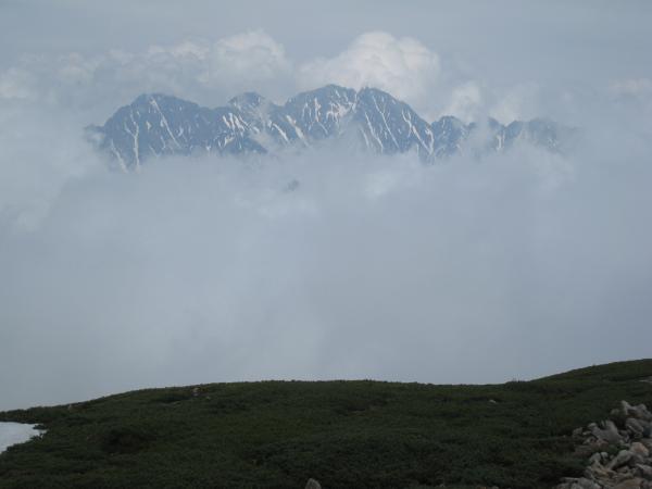 あいにく天候にはあまり恵まれず、槍穂がチラリと見えたのが救いでした。