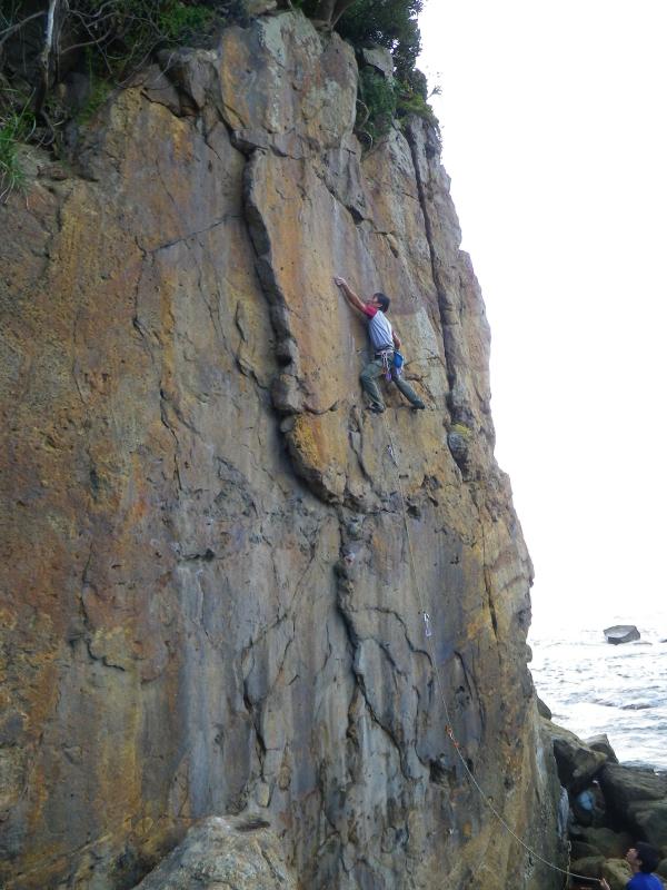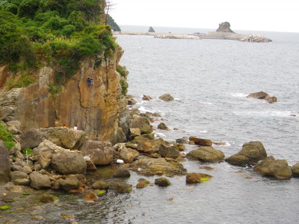 魚瀬の岩場では楽しくクライミングできましたが、手結ノ浦膳棚の岩場では、支点の位置と支点の錆びが気になってクライミングできませんでした。