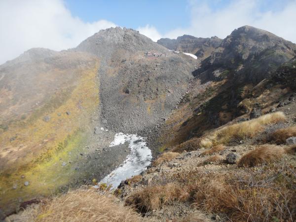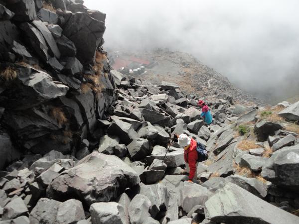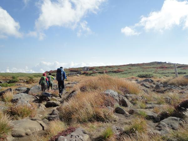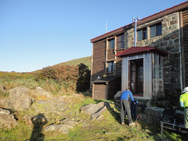 - 駐車場(15分)滝ノ小屋(60分)河原宿小屋(140分)行者岳(30分)新山(190分)駐車場
