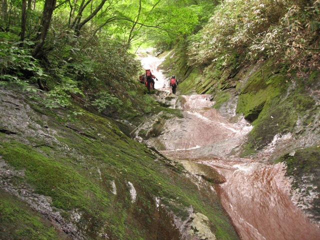 中ノ沢の赤い滑は全体的になだらかで大きな滝もなく下り易かった。